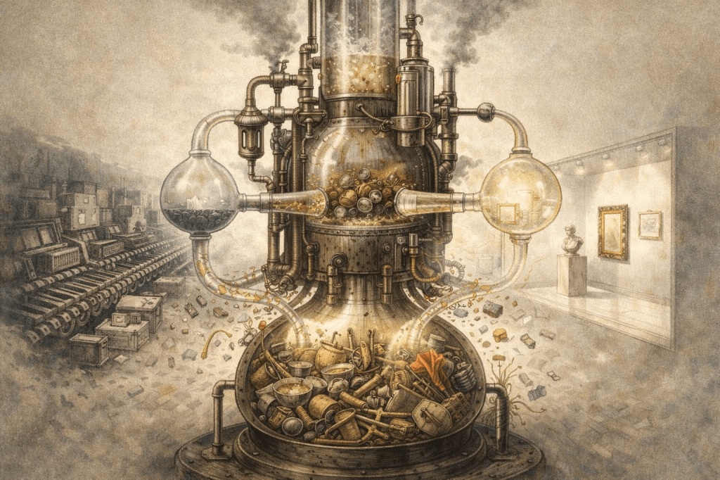 這種從工藝中分解出更純成分的鍊金術政策靈感,與19世紀世界博覽會的經驗密切相關。1851年倫敦舉辦的第一屆萬國博覽會,其正式名稱「萬國產業成果大博覽會」(Great Exhibition of the Works of Industry of All Nations),從一開始便將文化展示與產業推進視為同一套國家技術。日本政府在1873年參與維也納萬國博覽會後,對此模式留下深刻印象。有趣的是,明治政府的官員在考察之旅中發現,西方在分解工藝讓它往現代變身前還藏著一個平台轉換的概念模具——Design!