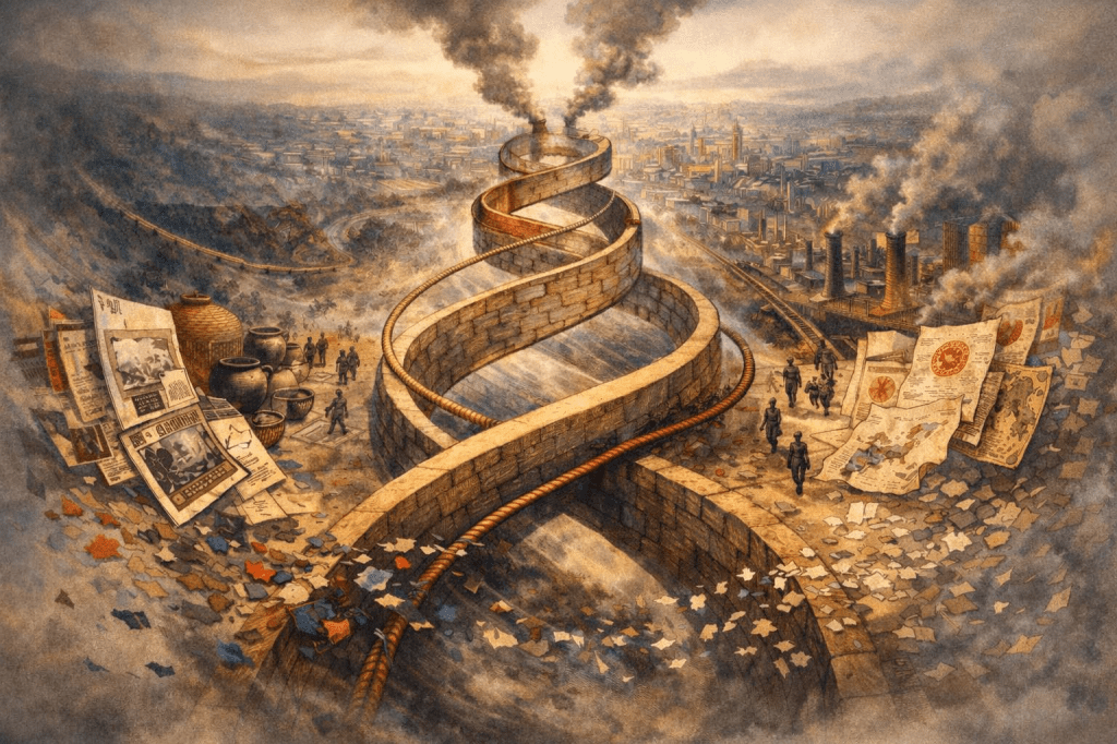1926這一年,並非因為情緒成熟、理念水到渠成,而是因為「工藝問題」在日本社會中,正好走到了制度即將被定型、棋局即將被鎖死的關鍵斷面。要看見這個「制度即將凝固」的斷面,之前一再被我們暗示提及的一個概念與現實必須被正面放上舞台,或者應該說,我們正式升起這座龐大舞台的時候到了,那就是1867年「大政奉還」接著1868年「明治維新」的主題,東西文化板塊撞擊後地層激烈抽拔隆起的分水嶺:現代化!