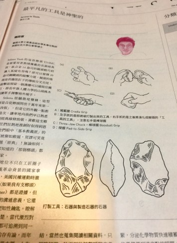 左手握鑿刀,右手握榔頭,右撇子木工職人的這個動作曾經讓我不解:「為何靈活自信的右手被指派來處理敲擊榔頭的簡單動作?」現在答案也跟著揭曉。從能人到直立人的70萬年間,精彩萬分讓考古學者讚嘆不絕的一段人類演化史,出現了三個手勢演化的關鍵突破。姆指壓向食指側面,捏住石刀割開毛皮肉片的「捏握」(是的,店員刷下信用卡的動作);手掌向上托住石頭讓手指翻動調整位置的「搖籃握」(cradle grip);還有意外地到演化後段才會出現的高級動作:拇指與食指扣環握住石頭,輔以中指從下方托住,猛力敲擊時還可利用手掌心吸收反作用震動的「棒球握」(baseball grip)。那不就是…. 沒錯,正是你我握住榔頭準備敲擊時的手勢!