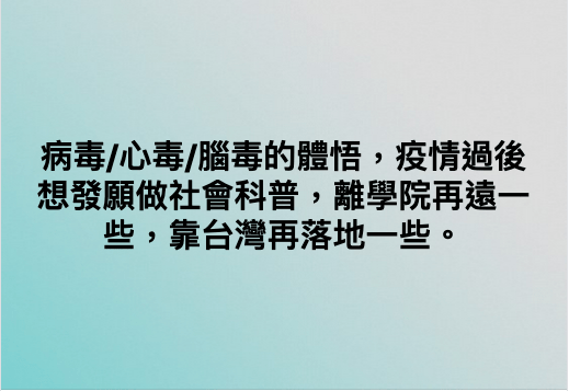 #我沒有引那篇三四處無法同意的文章就是想要保持距離,所以別再拉我進去打泥巴戰了,正經專心寫書要緊,大家平靜防疫吧~