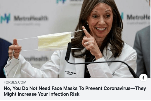 這位專家比台灣疫情管制中心還強調:沒生病就不需要戴口罩,而且她還說越戴越危險!(正確戴口罩有那麼難學嗎?我不信。危險的是病毒,不是口罩啊。)