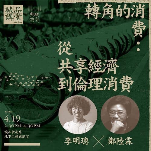 一開始只是沒幾句話的邀約,我都忘了是哪個場合,明璁大概是說:「誠品敦南要關了,我想在他關閉前找些朋友來對談聊聊,你要不要也一起來,我們談共享經濟、倫理經濟」!!Somehow,我一聽覺得有些sad,雖然好多年沒去,但誠品敦南是許多人共同的記憶,我曾經住在附近,那陣子兩三天就會過去走走。我幾乎想都沒想就說:「好啊!」