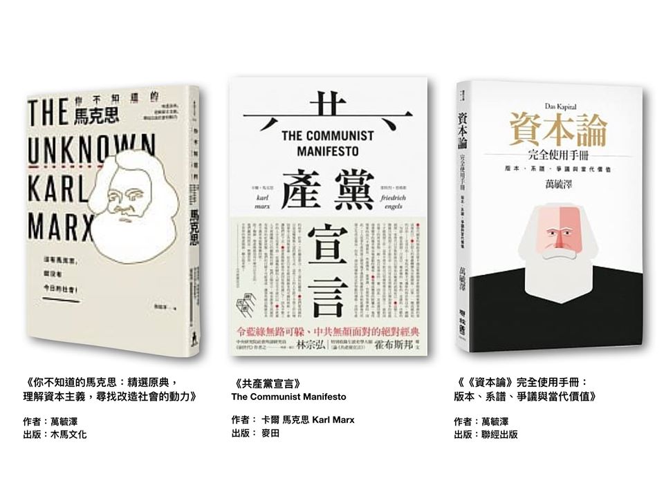 這學期我每週下課後都會在FB上介紹三本書給同學當課外閱讀,剛剛po的三本,兩本是萬毓澤寫的,另一本是舊同事宗弘導讀的《共產黨宣言》,實在非常感謝有這些書的存在,尤其是萬毓澤的兩本書是很好的養分,我很高興學生可以讀到這麼優質可口的補充材料,再加上我不至於太離譜的Marx理解(面對萬大師要小心講話),相信學生會有滿滿的收穫。