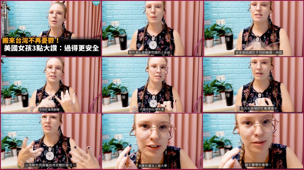 無意間看到這位美國女孩的video,她談到搬來台灣住後憂鬱症也跟著像奇蹟般好了?!我當然是很高興知道台灣有這種「神奇的療效」,還沒進入仔細看前其實大概猜得出來會是哪些原因。不過有趣的是她的開場白,可以理解必要先聲明心理健康問題有很多原因:大腦中的化學平衡、生活創傷、活在消極的環境、對世界普遍抱有悲觀的想法… 畢竟她暗示了「台灣」,而非就醫,可以有療效,這個嗯…牽涉到「醫療行為」,X_X。