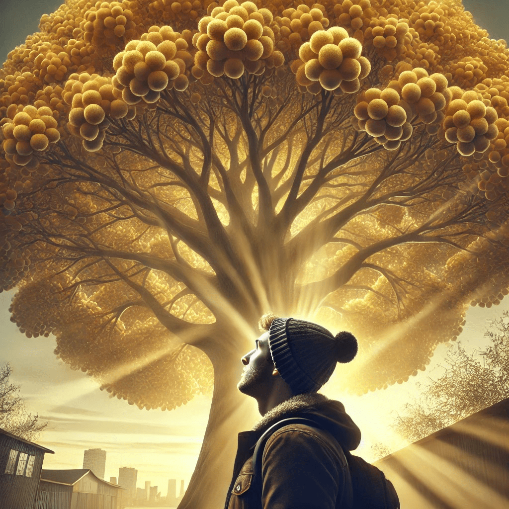 #ChatGPT的圖,把茄苳的果子畫成像癌細胞,哈哈,還帶著希望的光,哈哈,癌症確實給了新生命(雖然可能不長,X_X),好吧,這樣辯證好像也對。