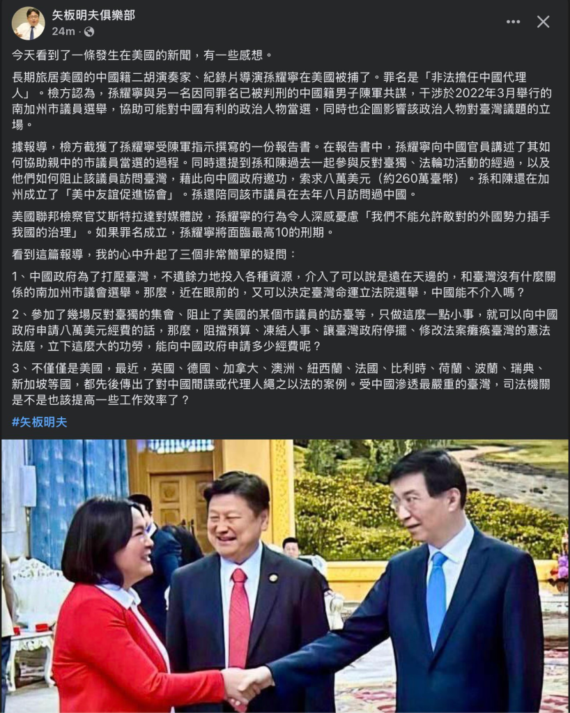 剛送他們走,看到這則矢板明夫先生的po文,感慨萬千,日本人都比我們「自己人」更看得出來昨天的三法通過如何是個臺灣香港化,中國共產黨滲透統戰收成收網的歷史轉捩點。