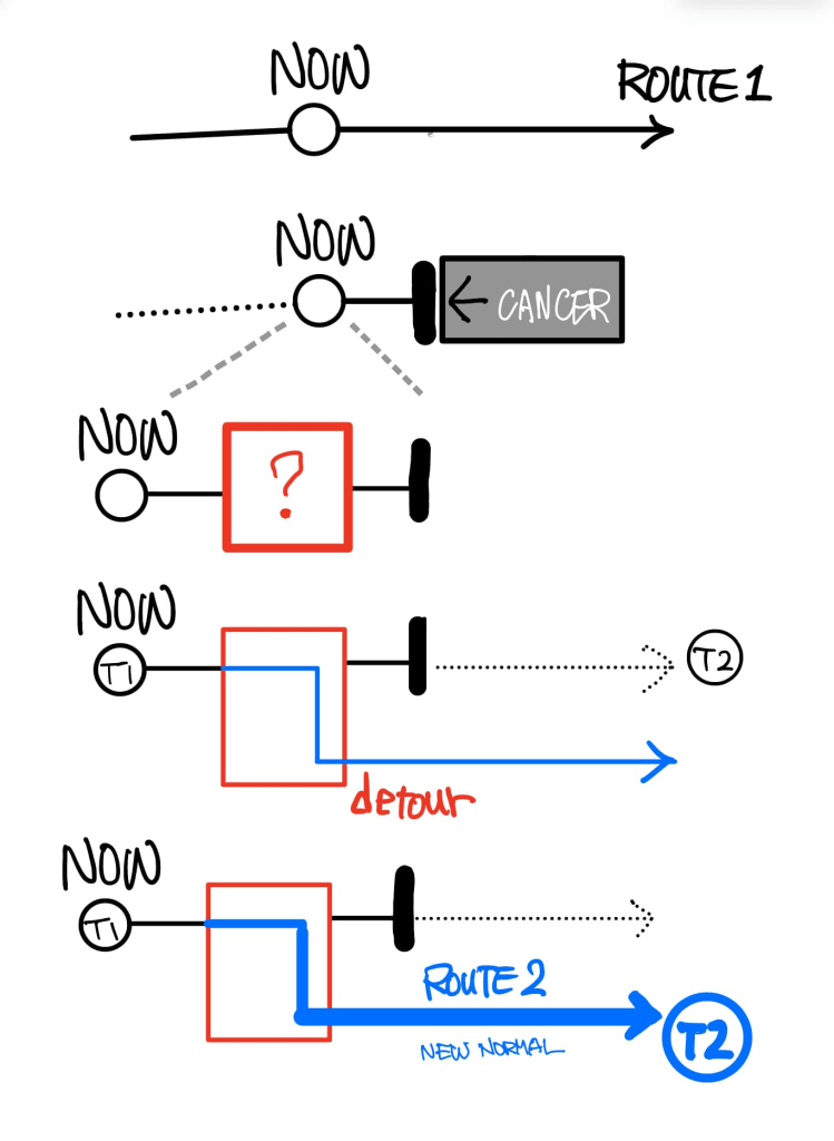 化療以來,生活變得非常孤立、單調、重複、沈悶、週而復始。所有的生存硬道理,都環繞在吃飯、排洩、睡覺、保持安靜與體力,今天結束明天繼續的輪迴,很難不一眼看穿,這樣的生活是個負面沉淪的陷阱。雖然卡繆說過:「必須想像薛西弗斯是幸福的!」但對現實世界裡必須竟日推著石頭上坡的人,很難。