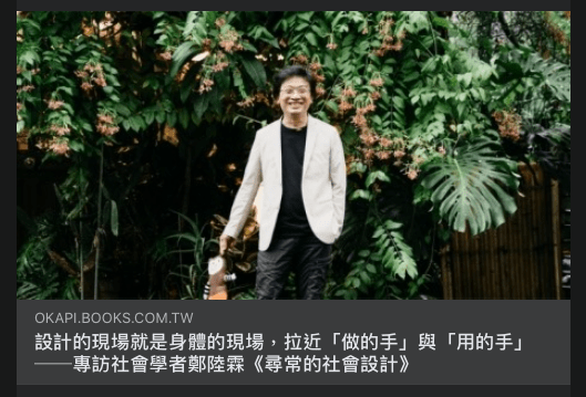 設計(無關商業或公共)本質出發點都在解決問題,它的重心不在高遠的法規政策,而是在貼近人身體五感所及的日常場域中,透過力求準確的環境調配來驅動社會實作的改變,進而達到社區與生活改善的目標。社會學如果不能有效連結設計,等於也斷絕了社會變革最終要被落實檢視的「最後一哩」。凝視人們與物件交接物質日常中的苦與樂,回到當初踏入發展社會學的初心,「更好的社會生活」需要的是,如Molotch的概念所言,「接合」(lash up)可見不可見的事物網絡而讓「東西」得以穩定存在的努力,證諸過去社會學前述突破巢臼的創新創業,沒有比「重新帶回物件」(bringing the objects back in)的設計社會學更適合提供這樣的改革洞見了!