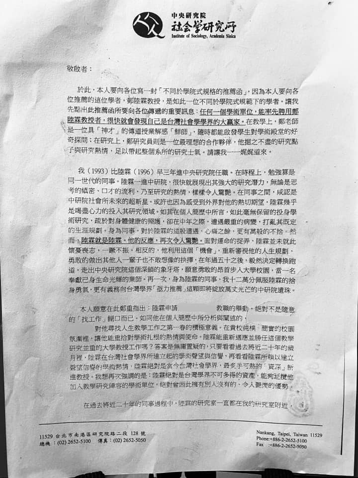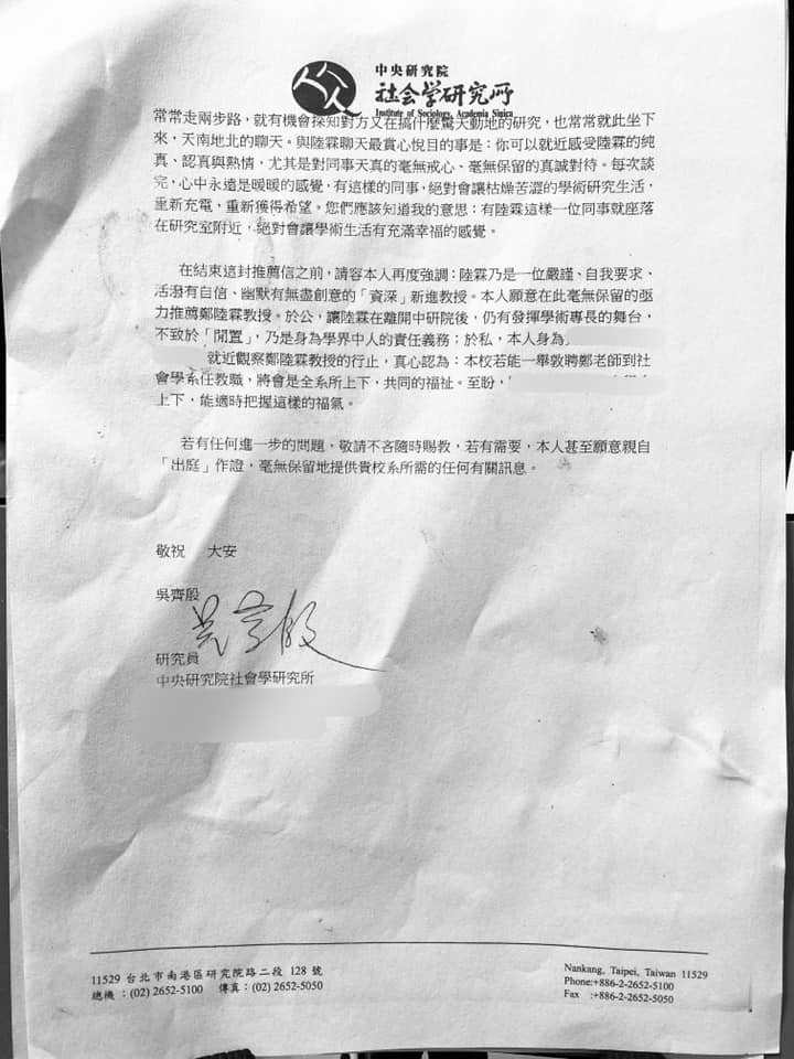 原來是我8年前離開中研院社會所之際,研究室鄰居老大哥齊殷幫我寫的推薦信,這才想起我加入實踐工設前曾申請國內某社會學系的往事。